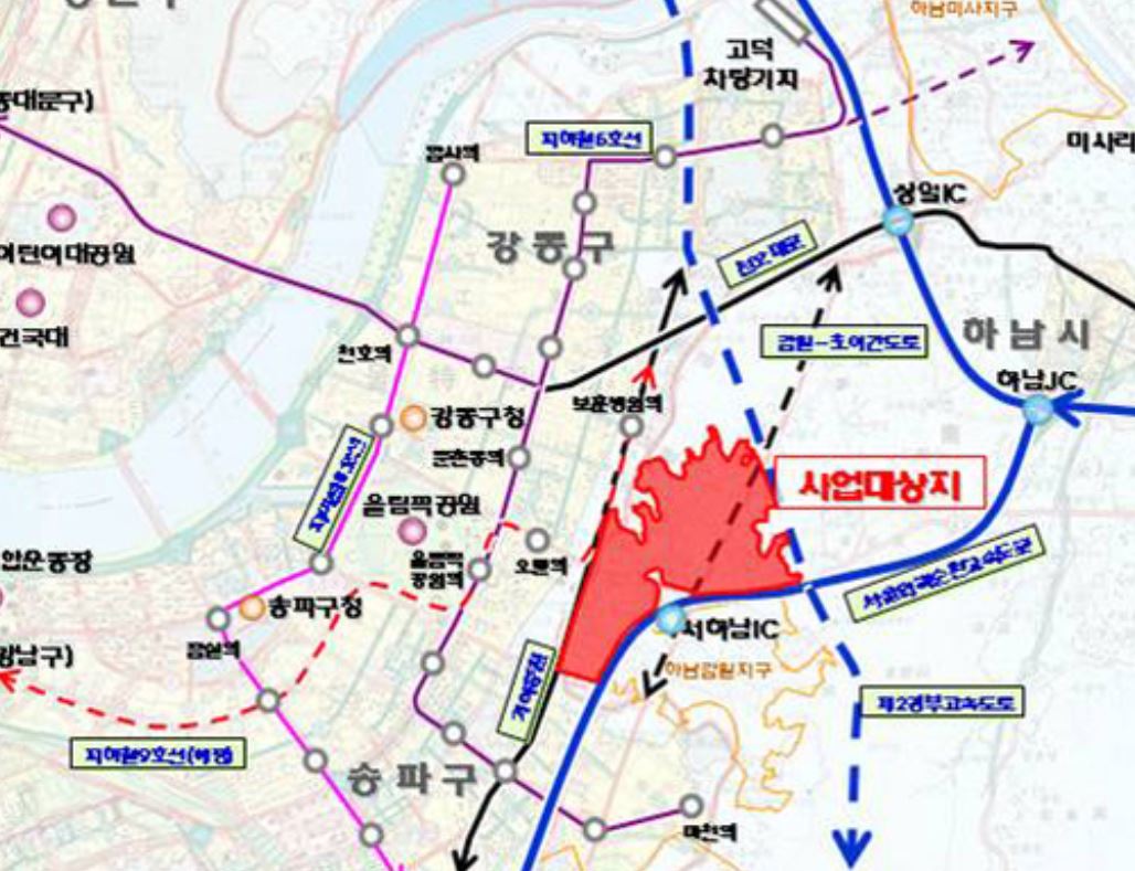 하남에서도 감북지구와 초이지구는 서울 접근성과 교통이 좋아서, 산업단지와 주택을 공급하기에 가장 적합한 입지이다.
