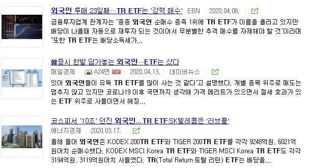 22일 한국거래소는 배당금에 대한 자동 재투자 및 이로 인한 세금 이연효과 등으로 수요가 증가하고 있다며 최근 코로나 19 사태로 한국 주식을 매도하고 있는 외국인들도 TR 상품엔 순매수 규모를 확대하고 있다고 밝혔다.